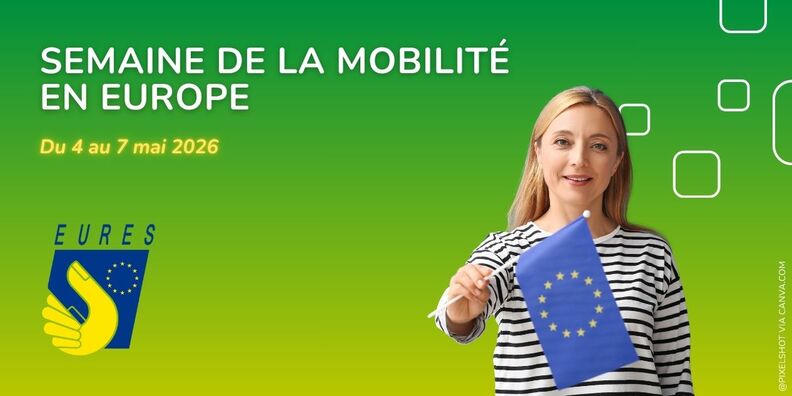 La Semaine de la Mobilité en Europe organisée par le réseau EURES, du 4 au 7 mai 2026, propose 16 webinaires pour préparer un projet de mobilité en Europe. Cap emploi animera l'un de ces webinaires en faveur de la mobilité des personnes en situation de handicap !